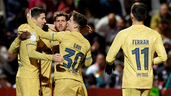 Tras un robo de balón, Kessié dejó para Lewandowski, que marcó de tiro pegado al palo (49) dejando bien encarrilado el encuentro.El artillero polaco volvería a ver puerta al final del encuentro con otro tiro cruzado (89).Con la ventaja en el marcador, el Barça ya sólo gestionó el partido y acumuló goles hasta llevarse el pase a cuartos."Hace dos o tres semanas no estábamos tan finos y ahora tenemos más solvencia y más confianza", dijo el técnico del Barça Xavi Hernández tras el partido, convencido de que "la Supercopa (de España) nos ha dado el salto de calidad y nos ha venido bien ganarla".