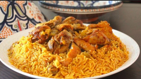- Retirer le tout du feu. Prendre un grand plat de four, y verser le riz et le recouvrir de sauce qui doit être assez liquide pour recouvrir tout le riz.