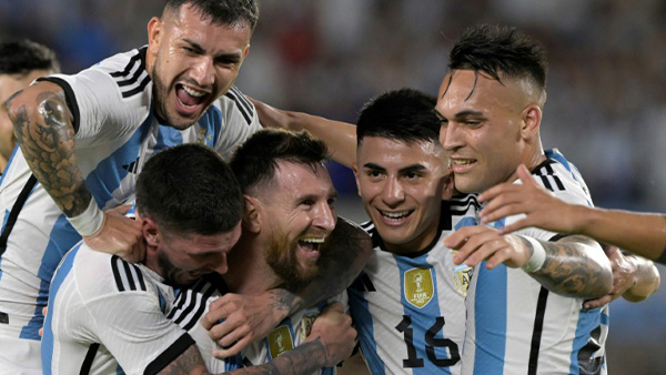 El primer gol de los rioplatenses llegó por decantación, en una de las tantas situaciones creadas y en uno de los numerosos tiros libres de Messi, que estrelló en el larguero, y después de que Paredes no pudo conectar, Almada entró por detrás para enviar la pelota a la red con un zurdazo. Lejos de rendirse después de varios intentos fallidos, Messi buscó hasta conseguir su gol, y lo consiguió a los 89 minutos, con un precioso tiro libre al ángulo izquierdo que derrotó por fin al inspirado Guerra para gritar su gol 800 y el 99 con la Albiceleste.