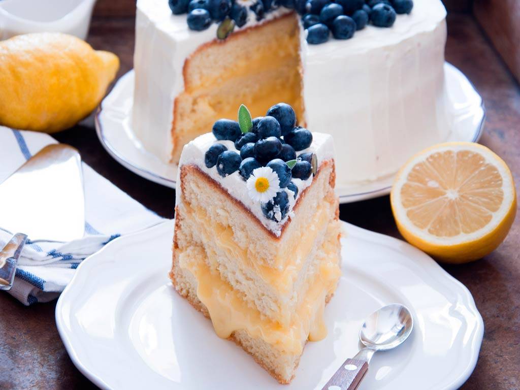 Para decorar, reparte por encima la tarta unos arándanos y termina con unas ralladuras de piel de limón.