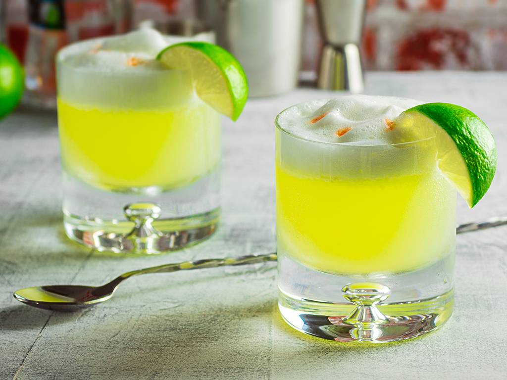 1) en una batidora pon 70% de Pisco, 30% de clara de huevo muy fresco, añade azúcar y un chorro de zumo de lima, agrega hielo y bate muy bien.