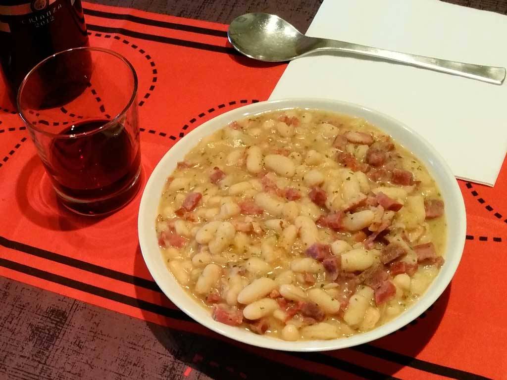 4) De vez en cuando con una cuchara de madera machaca algunas judías (esto sirve para ligar el caldo).