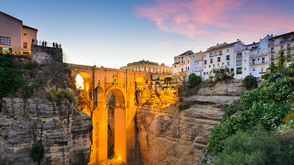 La primera de la lista posiblemente sea la más conocida para el público español. Esta localidad andaluza es más que conocida por su historia, pero sobre todo por su ubicación en el borde de un vertiginoso desfiladero que parte a la ciudad en dos. Los edificios hacen equilibrios por los bordes, con una gran oferta hotelera y de restauración. Cruzar el Puente Nuevo y mirar al río es obligatorio para ver la magnitud de este elemento rocoso.
