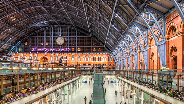 El tan característico edificio neogótico fue diseñado en 1863, por el arquitecto William Barlow, para la compañía ferroviaria Midland Railway. Su interior está constituido con una grandiosa estructura de hierro y piedra que aportan a la estación una amplitud y una espaciosidad incomparables.
