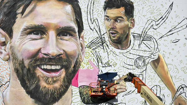 En Wynwood, el barrio de las artes de Miami, la ilusión por la llegada de Messi adopta otra forma. Subido a una grúa, el argentino Maximiliano Bagnasco trabaja en un enorme retrato del futbolista en la fachada de un edificio. El artista ya terminó una parte del mural, la cara sonriente de la estrella, y se dedica ahora a la otra: el futbolista de cuerpo entero con la camiseta de su nuevo equipo. Una labor minuciosa que realiza cada mañana con spray de pintura, bajo una sombrilla que lo protege a duras penas del calor.