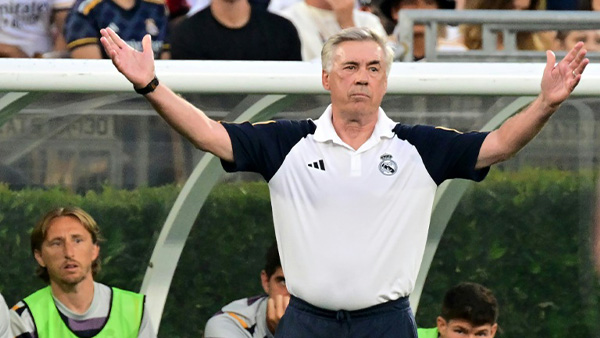 El DT del Real Madrid, Carlo Ancelotti, dijo tener a su equipo completo, luego de derrotar por 2-0 en un amistoso al Manchester United en Houston, cuando su club ha mostrado interés por traer a la estrella francesa Kylian Mbappé. "La plantilla está muy bien (...) estamos completos", dijo el miércoles DT merengue a periodistas al ser consultado si le hacía falta algún atacante más, cuando ya cuenta con Jude Bellingham y Joselu, quienes le dieron el triunfo frente a los de Old Trafford en el NRG Stadium de Houston, Texas. También se mostró contento con el desempeño del brasileño Vinicius Jr. Dijo que su escuadra tiene una "calidad física y técnica que es fantástica, la plantilla está muy bien".