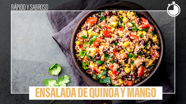 Descubre una explosión de sabores y frescura con nuestra ensalada de quinoa y mango con aderezo de limón y hierbabuena