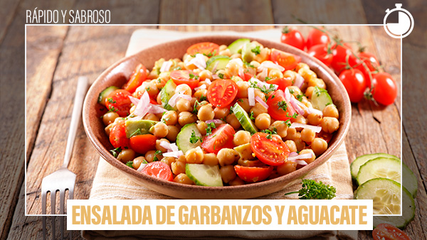 Sirve la ensalada de garbanzos y aguacate como acompañamiento o como plato principal. ¡Disfruta de esta opción saludable y deliciosa!