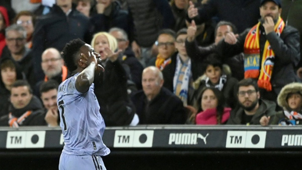Con un doblete, Vinicius salvó el empate 2-2 del Real Madrid (1º) ante el Valencia (9º) en Mestalla, donde el año pasado recibió unos insultos racistas que desencadenaron un escándalo mundial, este sábado en la 27ª jornada de la Liga. El gigante blanco se sitúa con siete puntos de ventaja sobre el Girona (2º), que el domingo visita al Mallorca (16º). Jude Bellingham llegó a marcar el tanto del triunfo blanco en el descuento, pero fue anulado al ser considerado fuera de tiempo. El inglés se quejó - 'It's a fucking goal', dijo, según su técnico Carlo Ancelotti- y fue expulsado por roja directa.