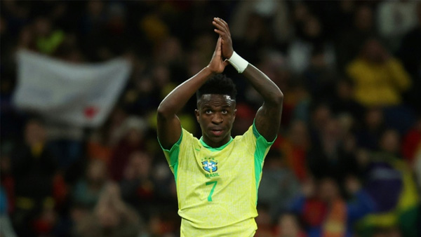 El extremo brasileño apenas logró tocar ningún balón, ni llevar auténtico peligro hacia la meta defendida por Unai Simón, que regresó bajo los palos tras no jugar el pasado viernes contra Colombia. Vinicius acabaría retirándose en el minuto 70 sustituido por Douglas Luiz, bajo los aplausos de un Bernabéu puesto en pie al que el jugador correspondió con aplausos al cariño del estadio. España consiguió anular a Brasil impulsada por la buena dirección de Rodri en el centro del campo y las incisivas llegadas por la derecha de Lamine Yamal, el hombre más peligroso de la Roja.