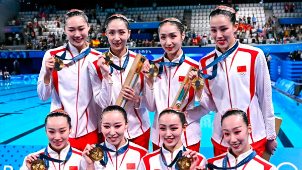 A equipe da China terminou em primeiro lugar na prova da rotina acrobática do nado artístico dos Jogos de Paris-2024, ganhando seu primeiro ouro na modalidade.