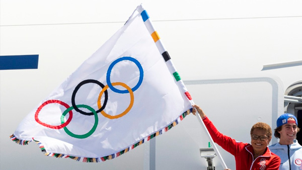 A prefeita da cidade, Karen Bass, chegou em um avião decorado com desenhos de palmeiras e com o logo "LA 2028" e percorreu a pista carregando a bandeira com os cinco anéis olímpicos ao lado de vários atletas americanos.