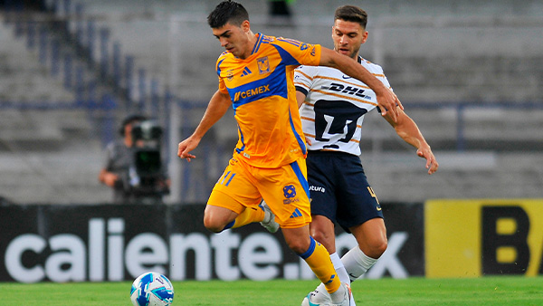 Los Tigres de la UANL remontaron y vencieron 3 - 1 a los Pumas de la UNAM en el Estadio Olímpico Universitario, en un partido marcado por un doblete de Ozziel Herrera y un espectacular gol de Fernando Gorriarán. Pumas se adelantó con un tanto de Rogelio Funes Mori, asistido por César Huerta. Sin embargo, Tigres empató con un penal de Herrera y luego Gorriarán brilló con un gol desde fuera del área. Herrera selló el triunfo con su segundo gol tras un tiro de esquina. El partido también destacó el debut de Uriel Antuna con Tigres.