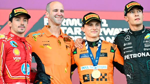 "McLaren y Oscar han hecho un trabajo excepcional y fueron mejores que nosotros. Perdimos la carrera porque no defendí tan bien como podía haberlo hecho", reconoció con deportividad Leclerc. Russell fue tercero en esta 17ª prueba del Mundial, marcada por el accidente entre Sergio Pérez (Red Bull), que tenía encarrilada la tercera plaza, y el Ferrari de Carlos Sainz.
