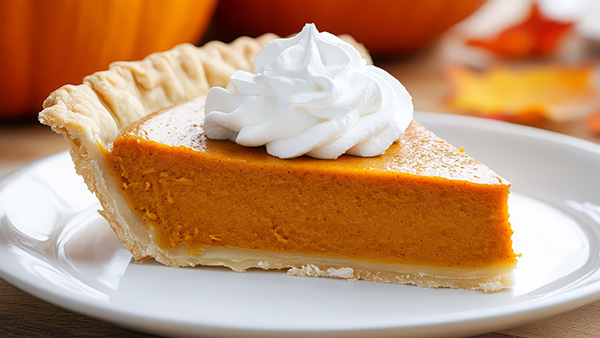 El pastel de calabaza es el cierre perfecto: un toque dulce y especiado que evoca el espíritu del otoño y la esencia de Thanksgiving