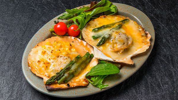 3. Vieira gratinada con mantequilla de ajo y parmesano