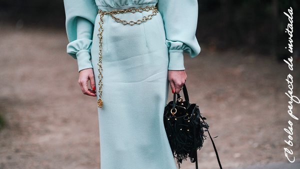 Lo ideal es optar por un clutch rígido con cadena larga (para colgar si te cansas de llevarlo en la mano) y un interior bien distribuido. Busca uno con compartimentos o utiliza mini neceseres tipo sobre para mantener el orden.