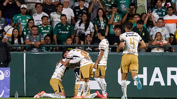 Pumas remontó y venció 2 - 1 al León en su visita al Estadio León, metiéndose en zona de Play-In. Jhonder Cádiz adelantó a los Esmeraldas tras una gran asistencia de Rigoni, pero un error del arquero Alfonso Blanco permitió a Leo Suárez igualar el marcador. En la segunda mitad, Cádiz desperdició una clara oportunidad, y José Caicedo definió el triunfo universitario con un golazo desde fuera del área. Con este resultado, Pumas sube al décimo lugar con 17 puntos, mientras que León sumó su tercera derrota consecutiva y cayó a la tercera posición de la tabla.