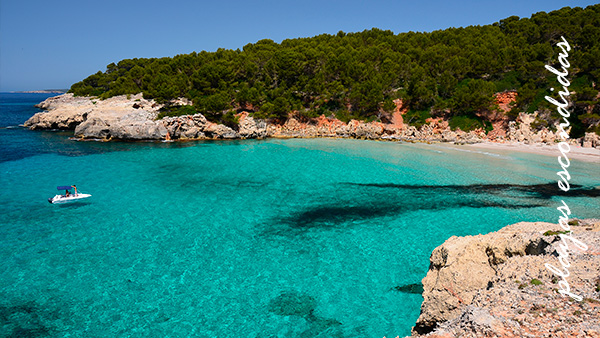 En el suroeste de Ibiza, Cala Tarida es una playa de aguas cristalinas y arena blanca, rodeada de acantilados y vegetación. Aunque es más conocida que otras de esta lista, aún conserva rincones tranquilos y menos concurridos, especialmente si se exploran las pequeñas calas adyacentes accesibles a nado o por senderos.