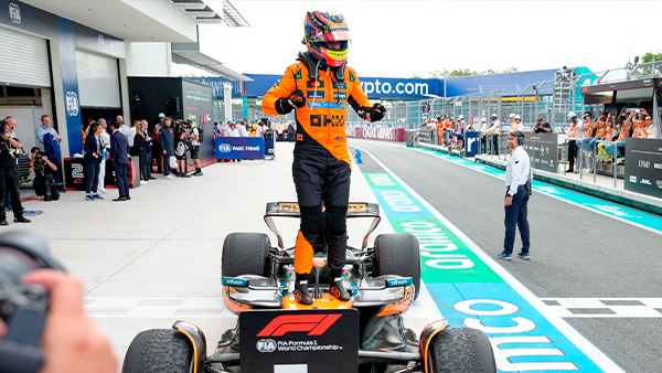 Oscar Piastri sigue demostrando que está listo para escribir su nombre en la Fórmula 1. El piloto australiano conquistó el Gran Premio de Miami 2025 con una actuación impecable, firmando su tercera victoria consecutiva y consolidándose como líder del Campeonato Mundial. Su compañero, Lando Norris, completó el 1 - 2 de McLaren, en un dominio absoluto del equipo papaya que ya empieza a marcar diferencia tanto en la pista como en la tabla.