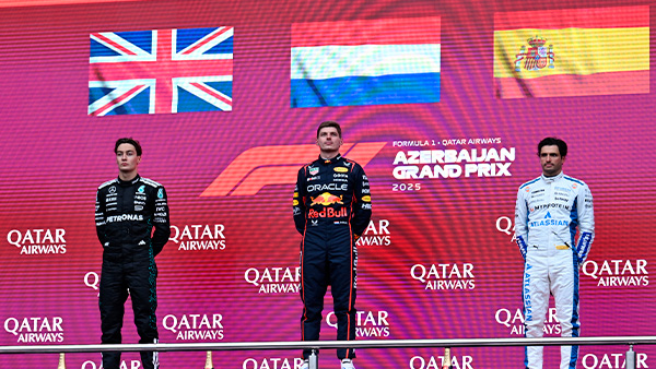 El podio en Bakú se completó con George Russell, quien cruzó la meta a 14 segundos de Verstappen y dio a Mercedes un respiro al sumar puntos importantes. El tercer lugar fue para Carlos Sainz Jr., quien celebró su primer podio como piloto de Williams, un logro que reafirma la competitividad de la histórica escudería en esta temporada.