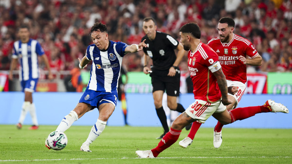A primeira parte foi intensa, mas travada. O ritmo foi constantemente interrompido por faltas e interrupções. Ainda assim, o Porto criou as melhores oportunidades: um remate cruzado de Pepê que passou a centímetros do poste e um cabeceamento de Aghehowa que obrigou Trubin a boa defesa. Do lado encarnado, apenas um remate de Pavlidis ameaçou a baliza de Diogo Costa.