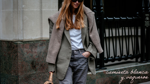 El último día de la semana pide comodidad, pero eso no significa renunciar al estilo. La combinación de camiseta blanca y jersey es perfecta para un ‘casual Friday’ que mantenga la elegancia incluso cuando el ambiente se relaja.