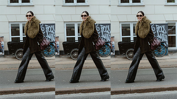 Pensado para esas comidas de empresa formales que empiezan con vino blanco y terminan con copa larga, este look juega a favor del equilibrio. El pantalón de cuero aporta carácter y una dosis justa de sofisticación nocturna, mientras que el jersey de cuello vuelto mantiene la sobriedad necesaria durante las primeras horas del día. El tacón fino, preferiblemente en un tono neutro, eleva el conjunto sin hacerlo excesivo. Es una elección segura para quien necesita que su estilismo funcione durante muchas horas y en distintos contextos sin perder coherencia.