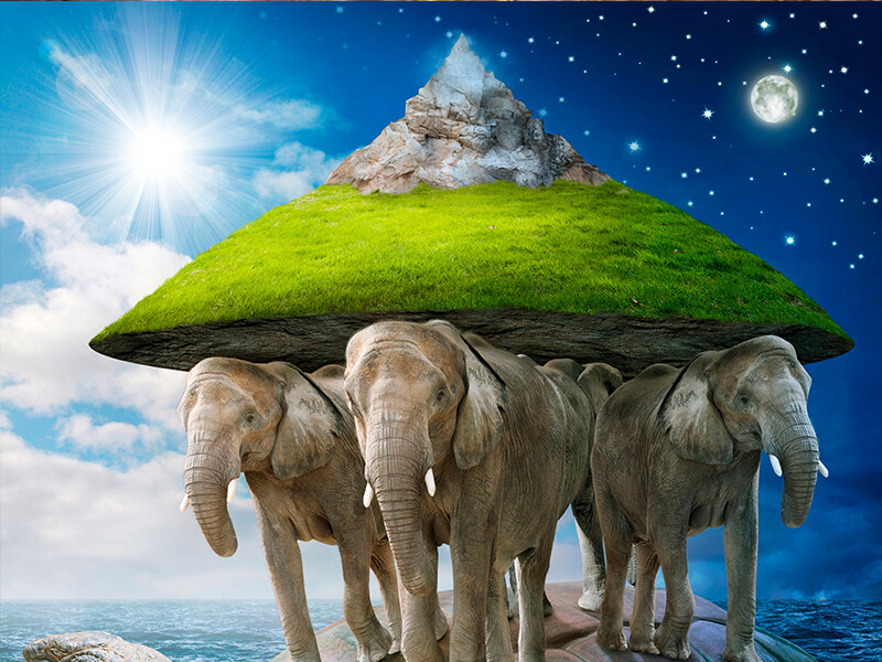 Elefantes y tortugas en lugar de Tierra redonda